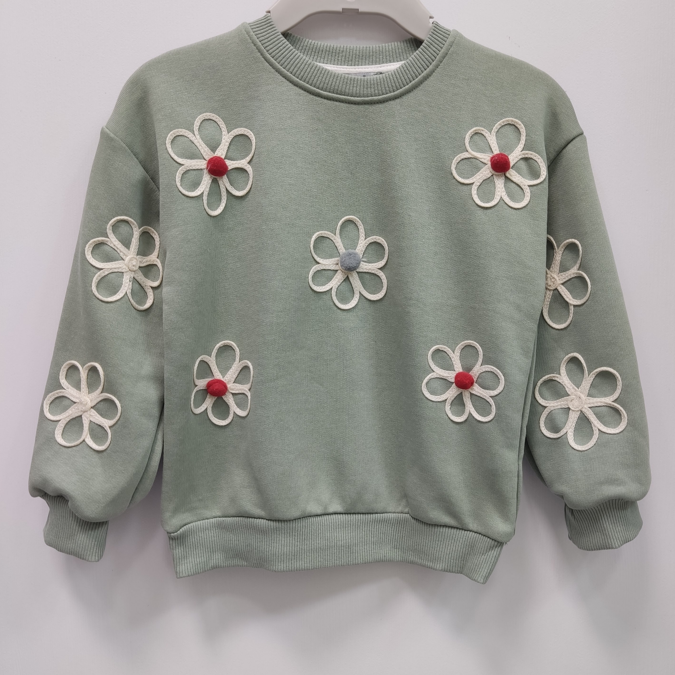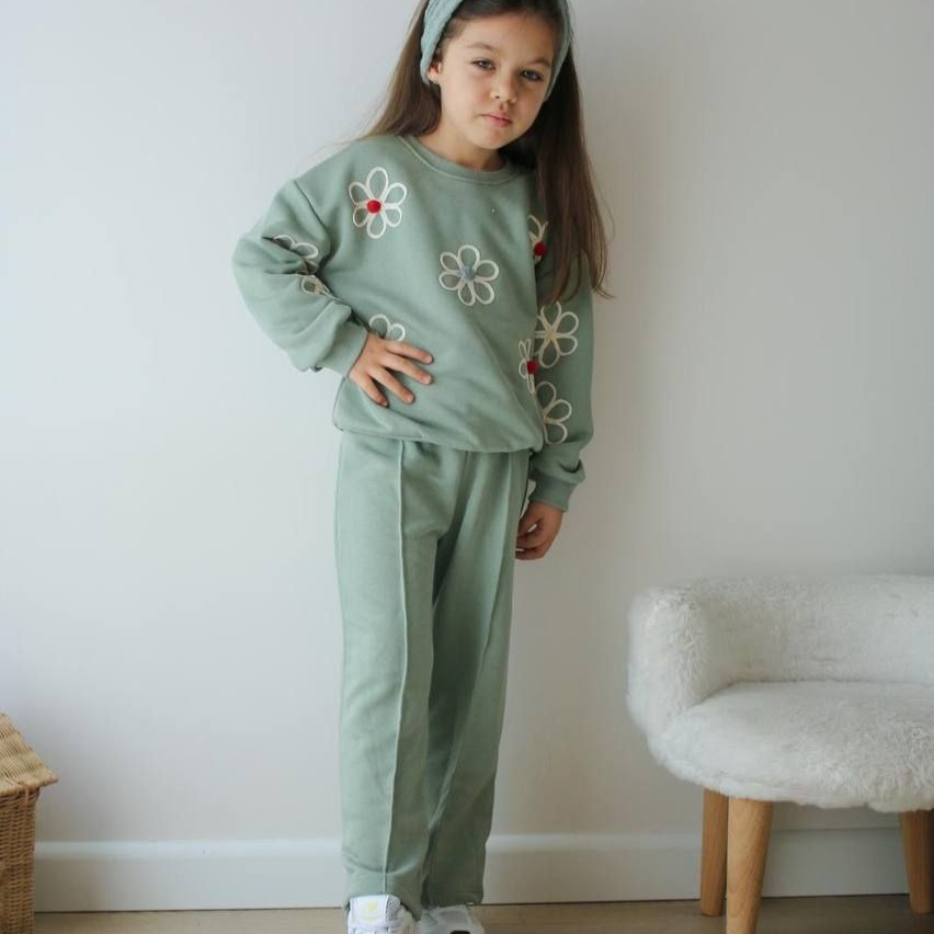 بلوز طرح شکوفه گلدوزی و برجسته و شلوار ساده بدون مچ