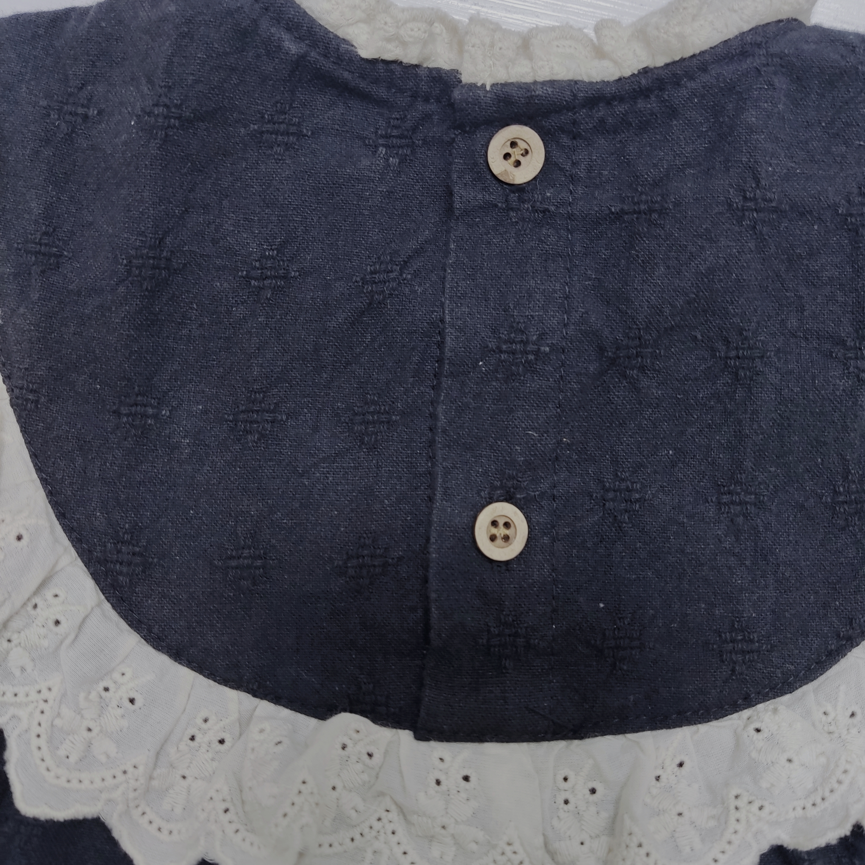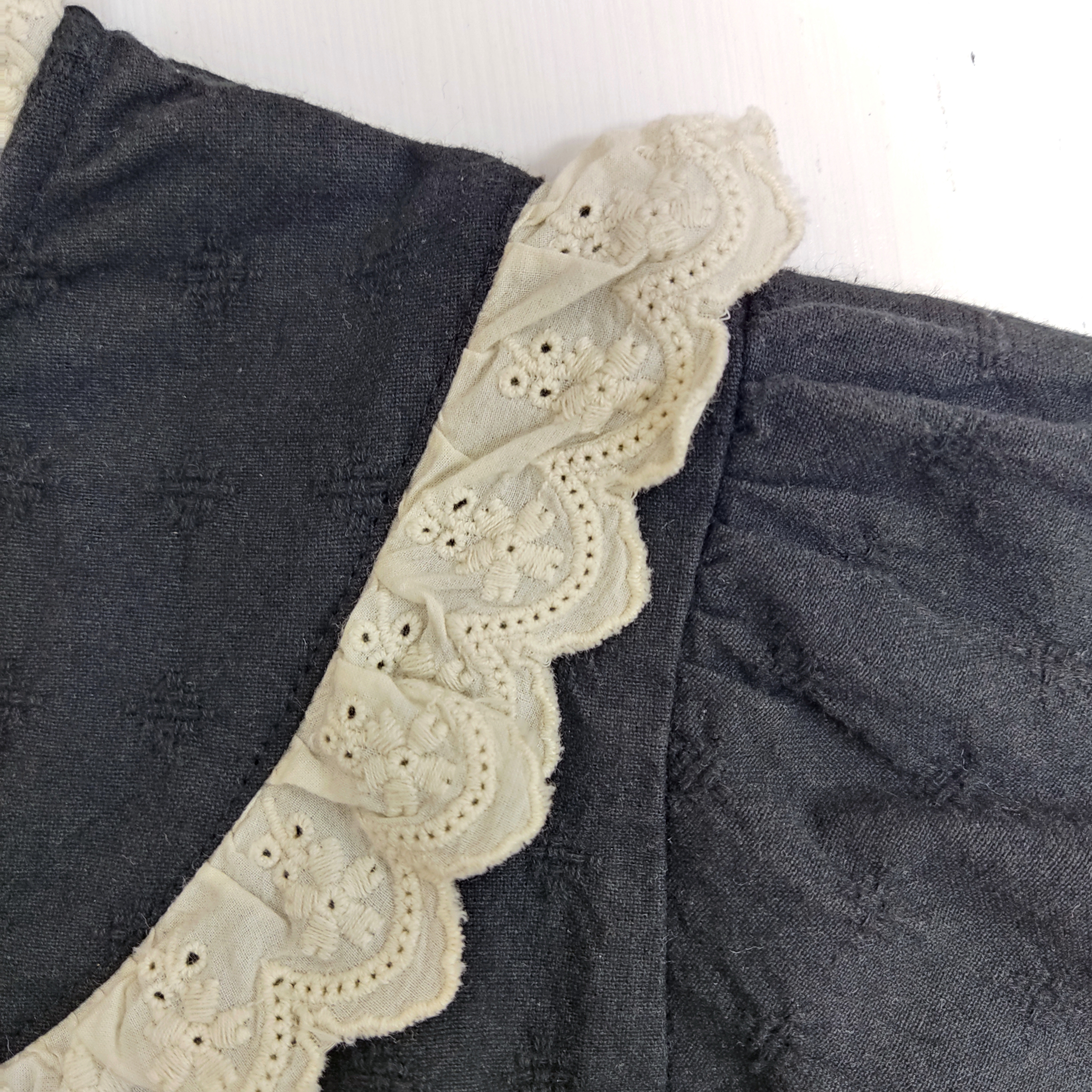 تکه دوزی گیپوری روی سینه و دور یقه